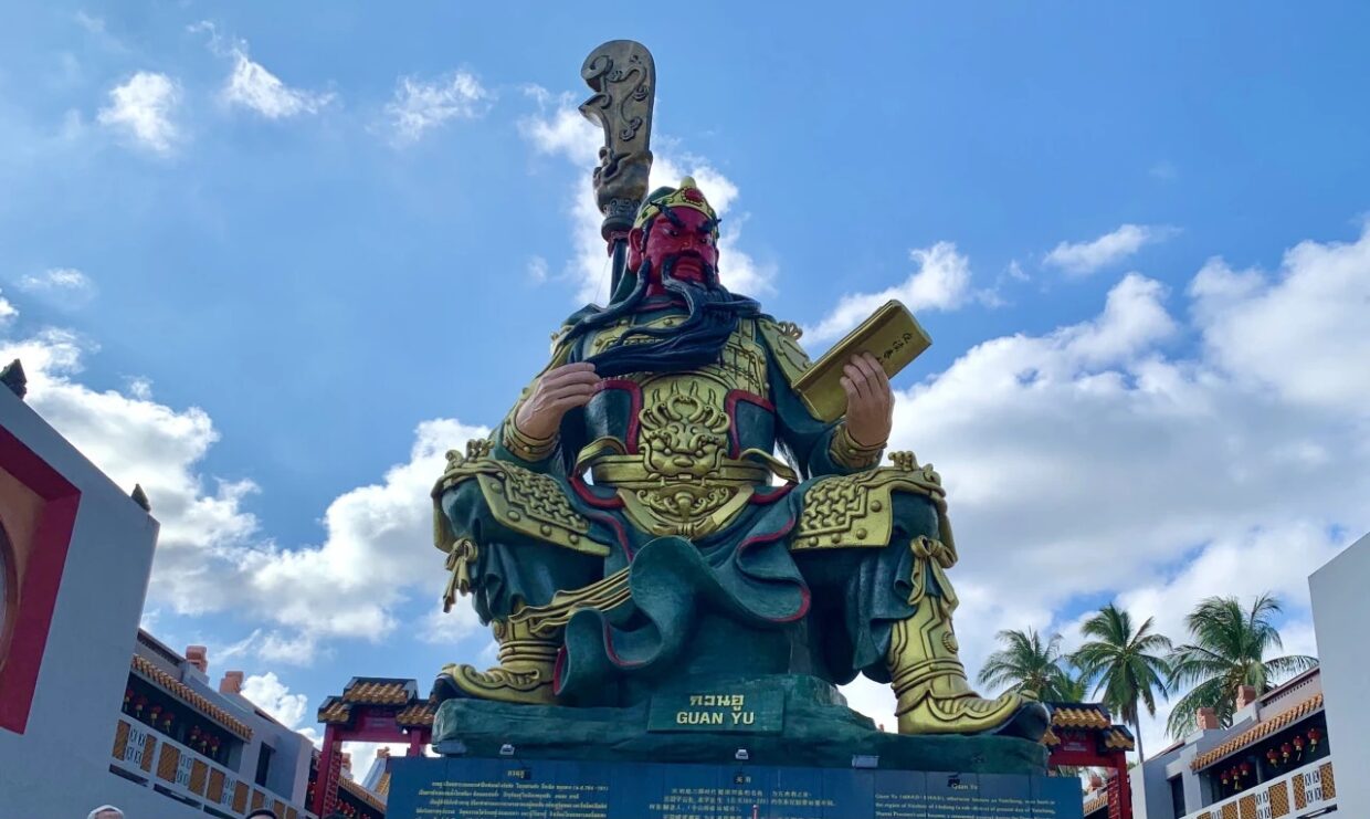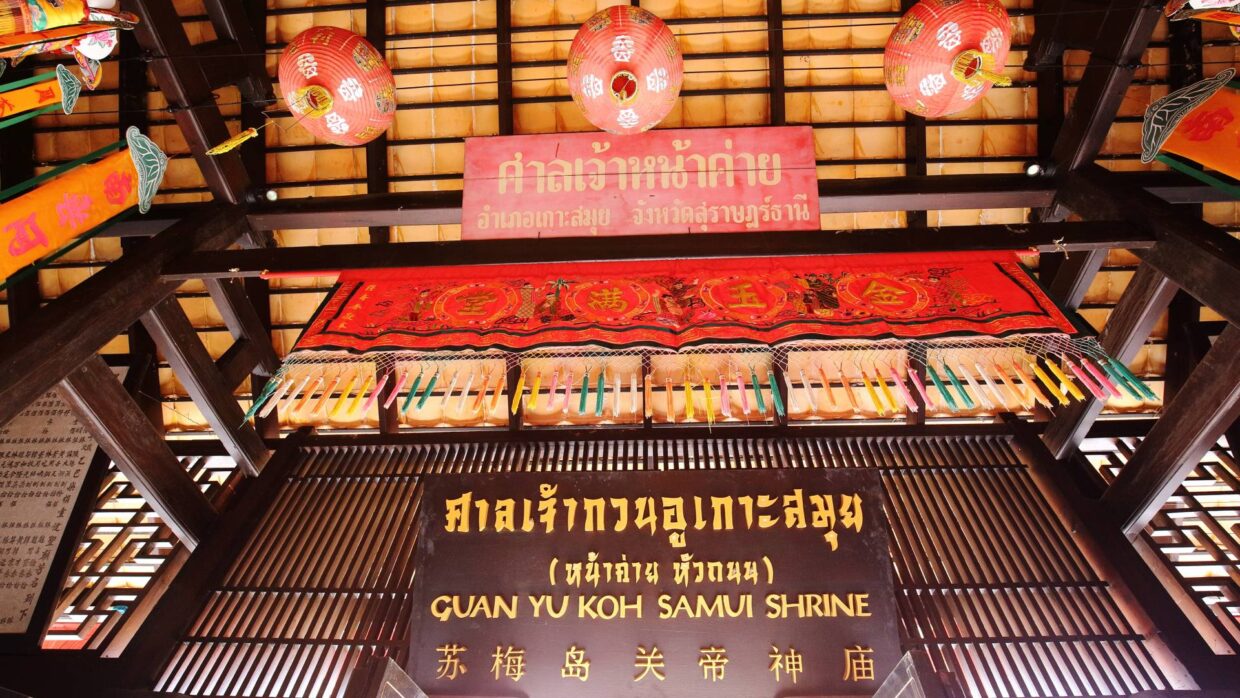 ศาลเจ้ากวนอู หรือ ศาลเจ้าหน้าค่าย ศาลเจ้ากวนอูแห่งนี้ มีอายุยาวนานมากว่า 145 ปี ความน่าสนใจคือองค์เทพกวนอูมีขนาดใหญ่ 16 เมตร ใหญ่ที่สุดในประเทศไทย นักท่องเที่ยวมาเที่ยวสมุยก็แวะกราบไหว้ขอพรในเรื่องโชคลาภ การค้าขาย บริเวณรอบ ๆ ศาลเจ้า มีพิพิธภัณฑ์ประวัติความเป็นมาคนจีนไหหลำบนเกาะสมุย มีอาคารเรียนภาษาจีนกลาง บริเวณรอบ ๆ ยังถูกตกแต่งเป็นย่านไชน่าทาวน์