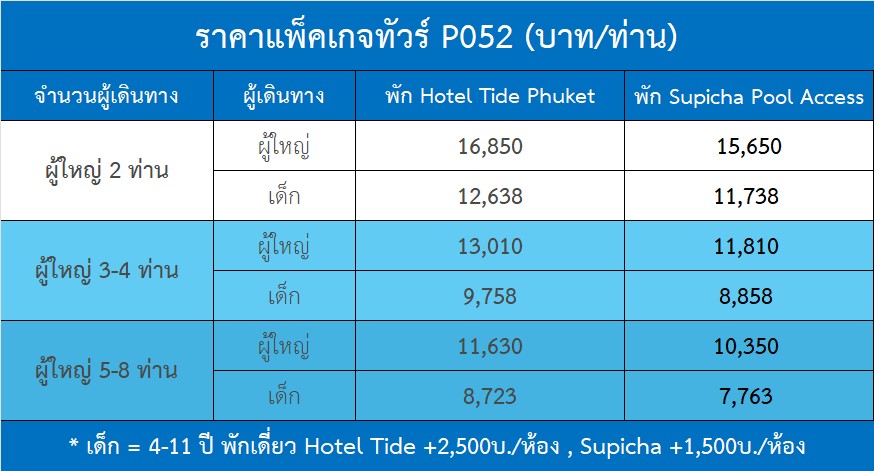 ปล.โปรแกรมทัวร์วันนี้สามารถเปลี่ยนแปลงได้ตามเวลาเครื่องออก หรืออยากไปหรือไม่อยากไปที่ไหนในเกาะภูเก็ต เพียงท่านแจ้งเข้ามา