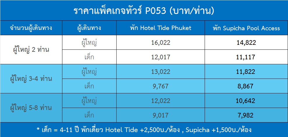 ปล.โปรแกรมทัวร์วันนี้สามารถเปลี่ยนแปลงได้ตามเวลาเครื่องออก หรืออยากไปหรือไม่อยากไปที่ไหนในเกาะภูเก็ต เพียงท่านแจ้งเข้ามา