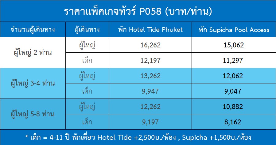 ปล. โปรแกรมทัวร์เกาะพีพีนี้อาจมีการเปลี่ยนแปลงได้โดยมิต้องแจ้งให้ทราบล่วงหน้า เนื่องจากสภาอากาศ คลื่น ลม ตามช่วงเวลาที่เดินทาง ทั้งนี้โดยคำนึงถึงความปลอดภัยและประโยชน์ของผู้เดินทางเป็นสำคัญ