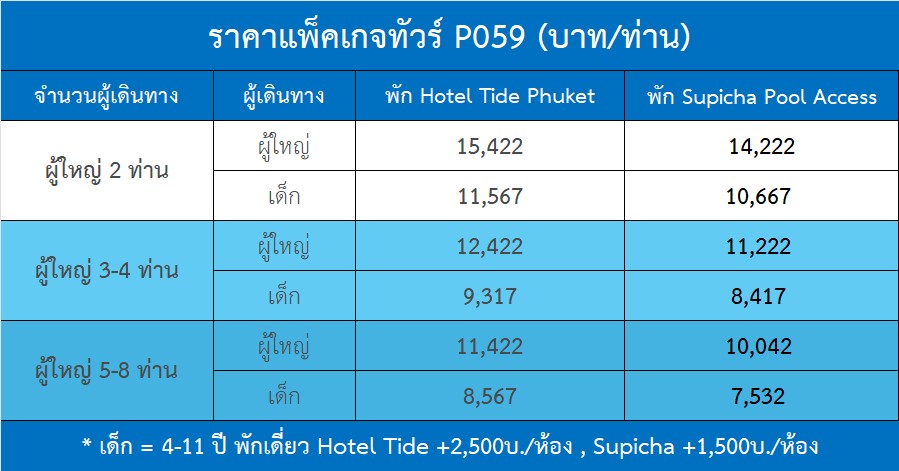 ปล.โปรแกรมทัวร์วันนี้สามารถเปลี่ยนแปลงได้ตามเวลาเครื่องออก หรืออยากไปหรือไม่อยากไปที่ไหนในเกาะภูเก็ต เพียงท่านแจ้งเข้ามา