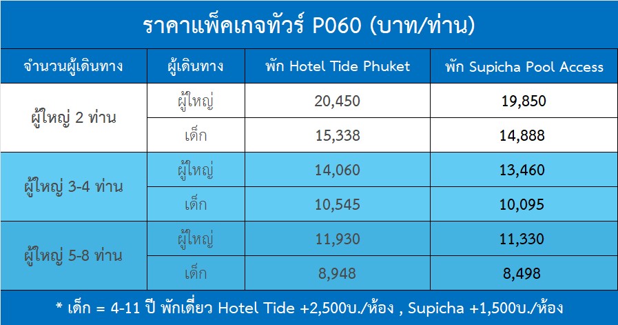 ปล.โปรแกรมทัวร์วันนี้สามารถเปลี่ยนแปลงได้ตามเวลาเครื่องออก หรืออยากไปหรือไม่อยากไปที่ไหนในเกาะภูเก็ต เพียงท่านแจ้งเข้ามา