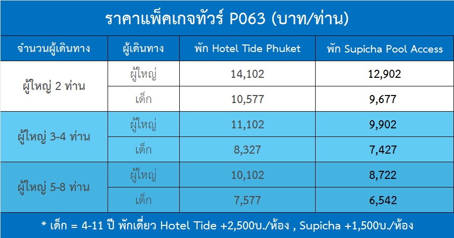 ปล.โปรแกรมทัวร์วันนี้สามารถเปลี่ยนแปลงได้ตามเวลาเครื่องออก หรืออยากไปหรือไม่อยากไปที่ไหนในเกาะภูเก็ต เพียงท่านแจ้งเข้ามา