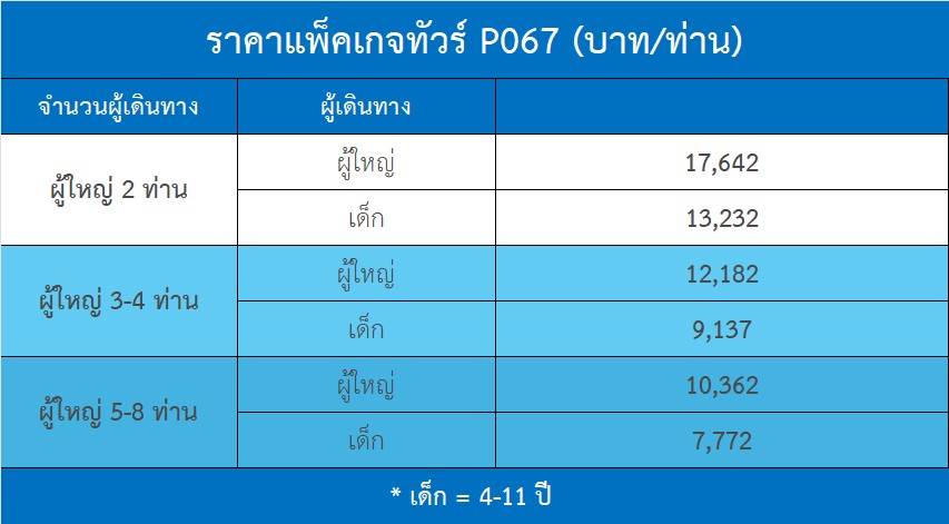 สิ่งที่รวมอยู่ในแพ็กเกจทัวร์: