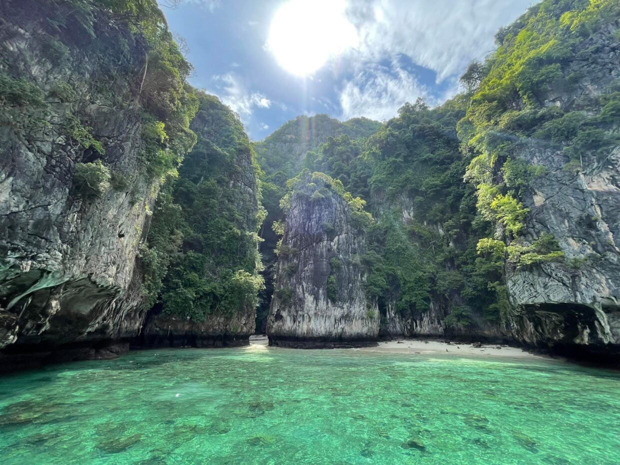 10.00 เรือนำท่านถึง เกาะพีพีเล แวะชมทัศนียภาพ ถ่ายภาพเป็นที่ระลึกที่จุดแรกคือ อ่าวมาหยาอ่าวชื่อดังจากภาพยนต์เรื่อง The Beach