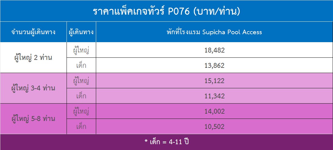 • ทัวร์นี้รับจองขั้นต่ำที่ผู้ใหญ่ 4 ท่านขึ้นไป